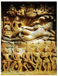 ఉదాహరణలలో ఒకటి. విష్ణువు దశావతారాల సవివర చెక్కింపులు ఆ కాలపు సమృద్ధమైన ఐకానోగ్రాఫిక్ సంప్రదాయానికి ఉదాహరణ.