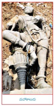 7అడుగుల ఎత్తున్న శైవద్వారపాలకుని విగ్రహం గుడి బయట పడేసి వుంది. శోభాయమానమైన అలంకృత శిల్పమది. నాలుగుచేతులున్న మూర్తి కుడివైపు ముందుచేతిలో గద, వెనక చేతిలో త్రిశూలం, ఎడమ వెనకచేతిలో ఖట్వాంగం, ముందు చేయి విరిగిపోయి వుంది. బహుశః ఈ శిల్పం గుడికి కుడివైపున నిలిపివుంచే శైవద్వారపాలకుని దయివుంటుంది. త్రిభంగిమలో వున్న ఈ శిల్పం కుడికాలు కొంచెం పైకెత్తి గదమీద నుంచి వేసి నిల్చున్నట్టుగా వుంది. పాదాల నుంచి తలపై కిరీటం దాకా హొయసలశైలి శిల్పమిది. పాదాలకు మంజీరాలు, కడియాలు, పిక్కలపై కీర్తిముఖం, నడుమున దట్టి, కుడిభుజం నుంచి వేసిన కపాలజంధ్యం, కంఠహారాలు, నుదుట మూడోకన్ను, కాకతీయశైలి కిరీటం, కిరీటం మీద త్రిశూల బింబంతో సర్వాంగసుందరంగా వుంది. గద లేకపోతే సాక్షాత్తు శివుని శిల్పమే అనిపిస్తుంది. ఈ శిల్పంతో పోలిన శిల్పాలు మనకు వరంగల్ కోట ప్రాంగణంలో, గణపురం కోటగుళ్ళ వద్ద చూడవచ్చు.